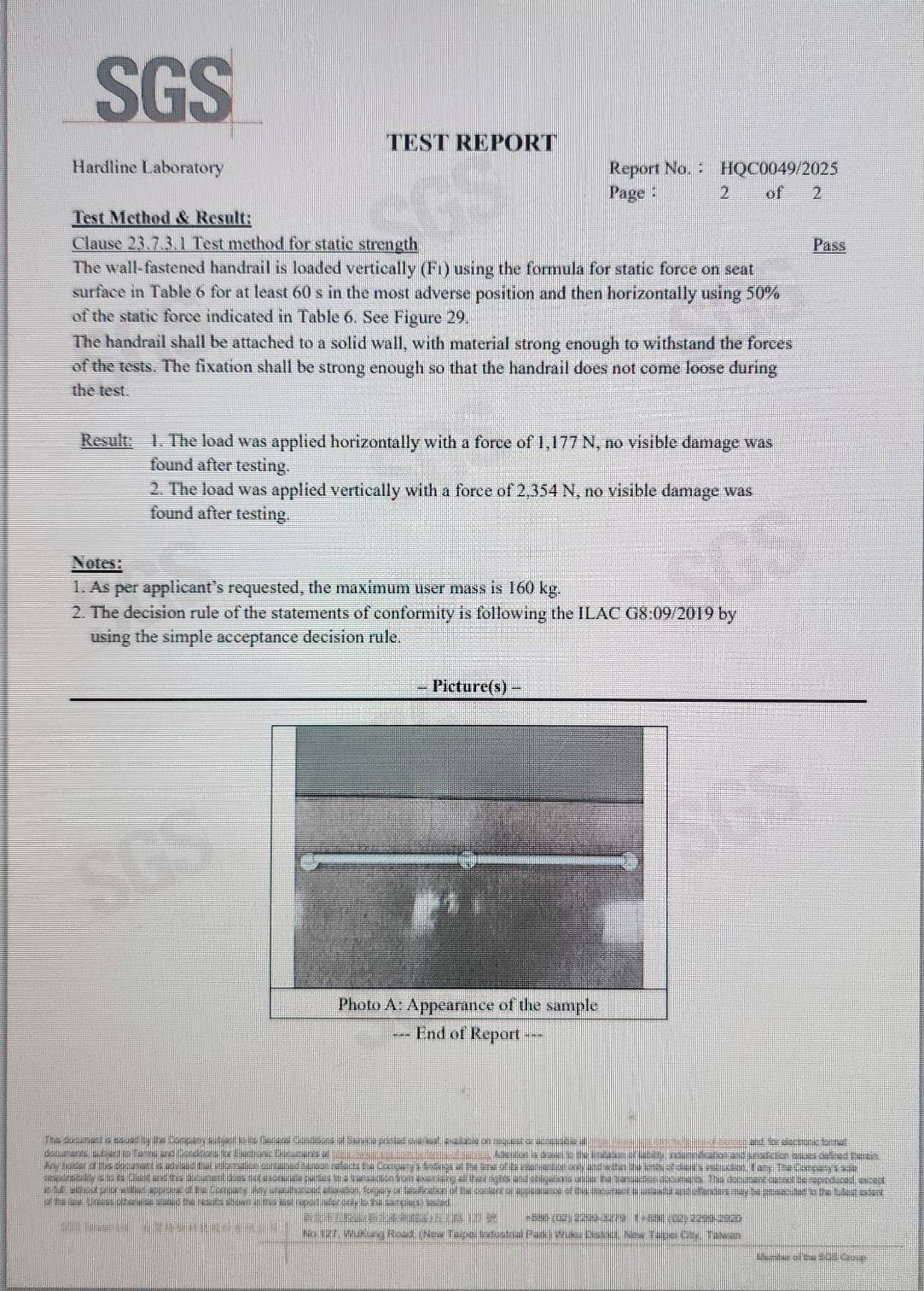• 承重:一個手掌範圍 SGS測試單點承重160公斤扎實過關