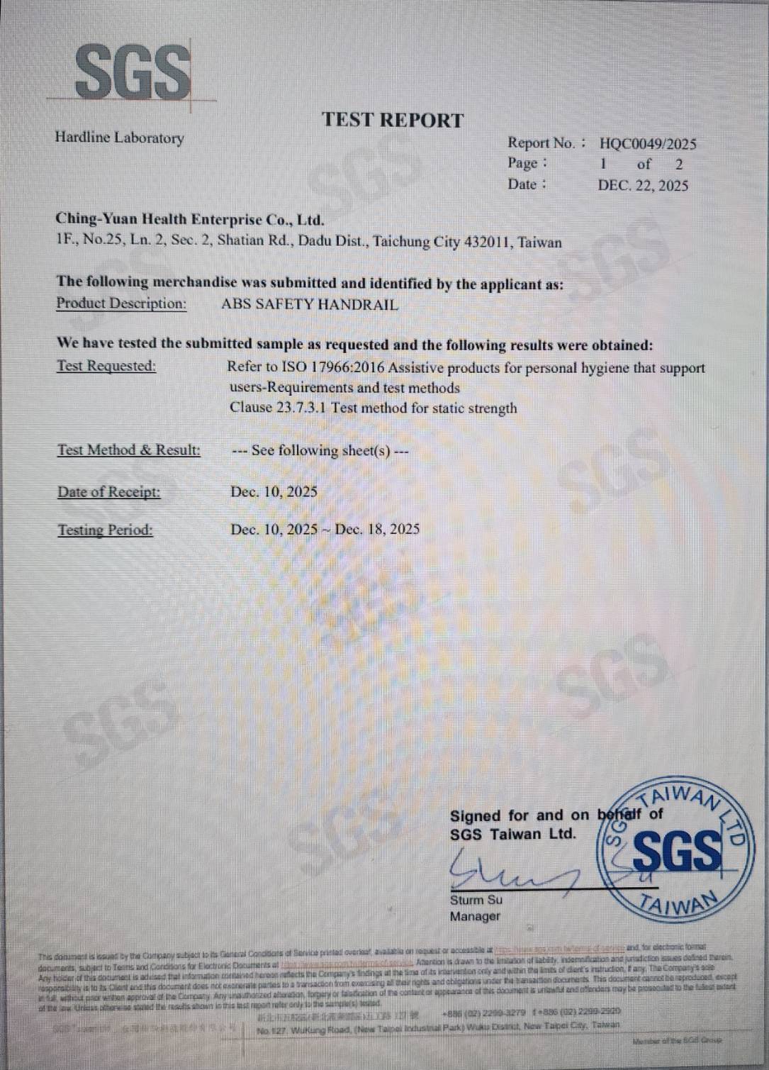 台灣工廠直銷 ABS一字型防滑扶手內部包覆的零件均為304不銹鋼和鋁合金材質,絕無參雜易鏽的2頭不銹鋼~外表看不出來內部鏽蝕,便宜貨用藥水一驗便知, ABS一字型防滑扶手常做為浴缸扶手.馬桶扶手.臉盆扶手.小便斗扶手,也是最普遍的無障礙扶手之一,如需安裝扶手則工資另計,ABS一字型防滑扶手採用最厚實的材料和最好的製作品質,SGS承重測試和材質證明俱全,全系列安全扶手享有國泰千萬產品責任險保障,讓您買的開心用的安心,替家人的安全把關是我們的責任