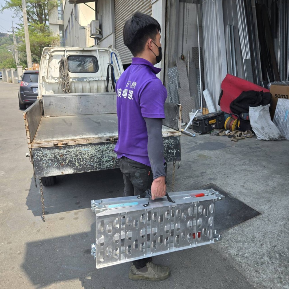雙折式登車板為輕量化鋁合金材質 , 不生鏽又輕且承重能力強 , 折疊收納體積小 , 活動式方便攜帶 , 隨時隨地都能搭起臨時性的斜坡道 , 用來推重機 . 機車 . 農機等 , 不適用輪椅! 雙折式登車板享有國泰千萬產品責任險保障