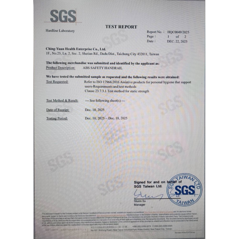 ABS防滑扶手 SGS承重測試
