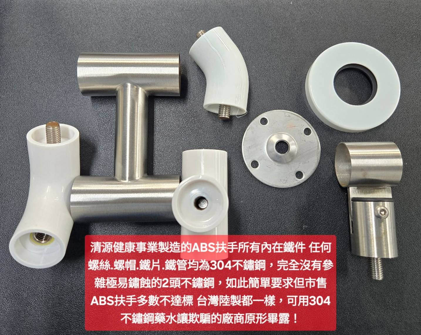 • ABS L型防滑扶手連接牆壁的底座均為滿焊,非焊接3點非常危險!焊接後的黑色屬正常現象,介意者請勿下單